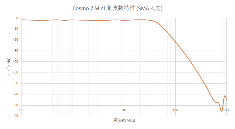 - カットオフ周波数:約50MHz (アンダーサンプリング用途には125MHz以上に伸ばすことも可)
