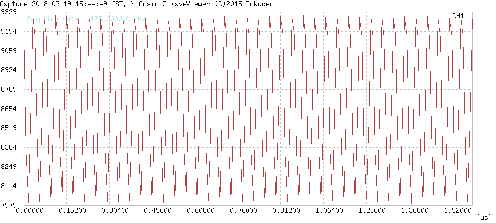 サンプリング周波数は125MHzですが、125MHz以上の信号も測定できます。その場合、アンダーサンプリングとなるため、125MHzで折り返したエイリアシングを見ることになります。