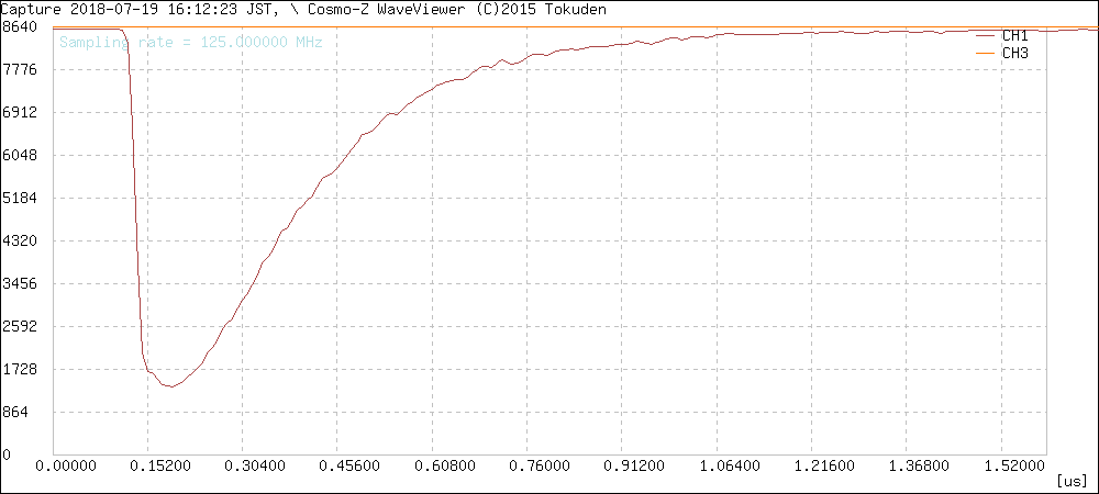 次の波形は、振幅が大きく飽和してしまっている例です。