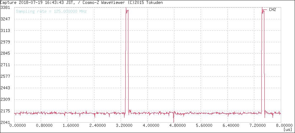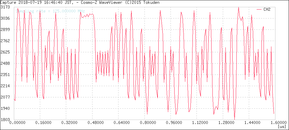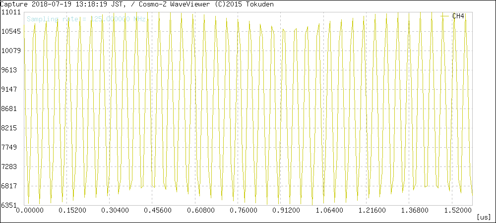 サンプリング周波数は125MHzですが、125MHz以上の信号も測定できます。その場合、アンダーサンプリングとなるため、125MHzで折り返したエイリアシングを見ることになります。