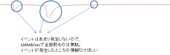 イベントがごく短期間に発生し、さらに発生確率が低い場合は、すべての時間のデータを記録すると非常に多くの無駄が発生します。
