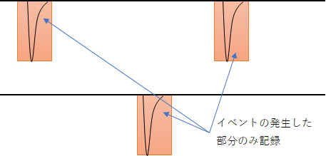 - イベントのない期間のデータを記録しないことで、データ量の削減が可能