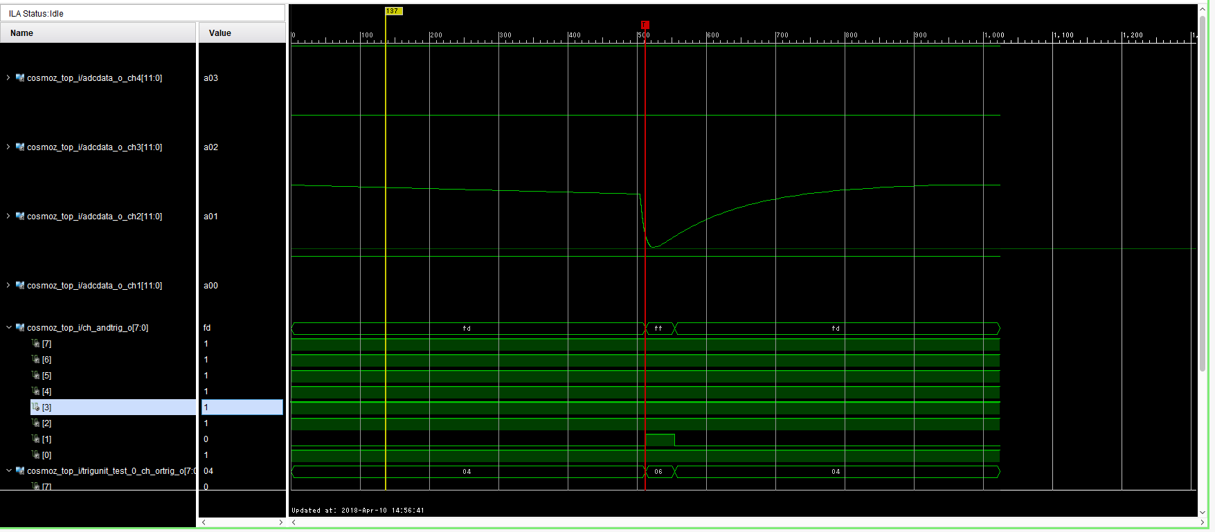 実測例(立ち下り信号ch. 2に対するch. 3とch. 4のベトー)