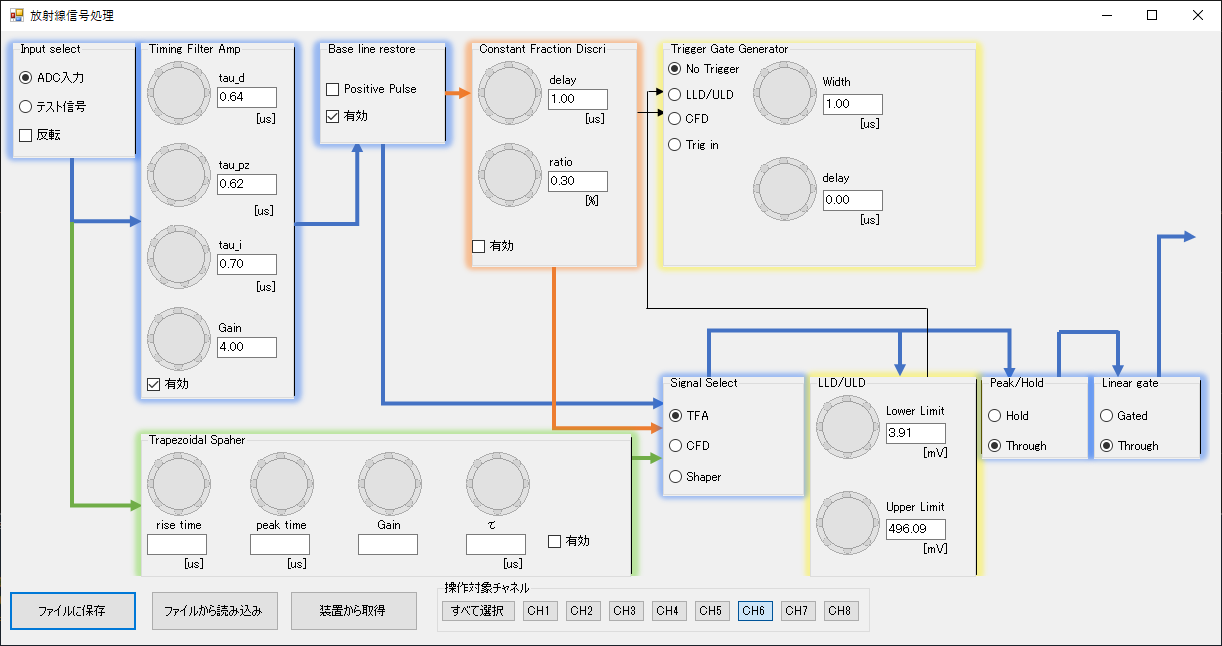 放射線計測用「信号処理回路(Shaper)」操作画面