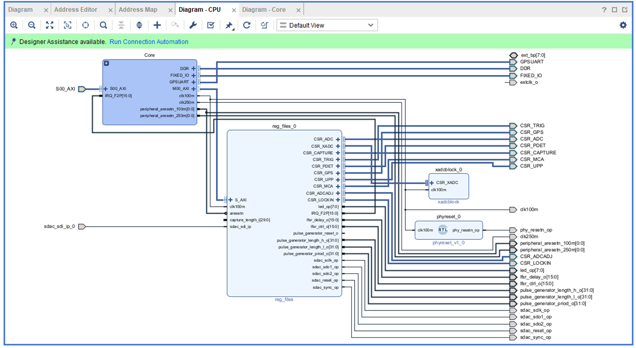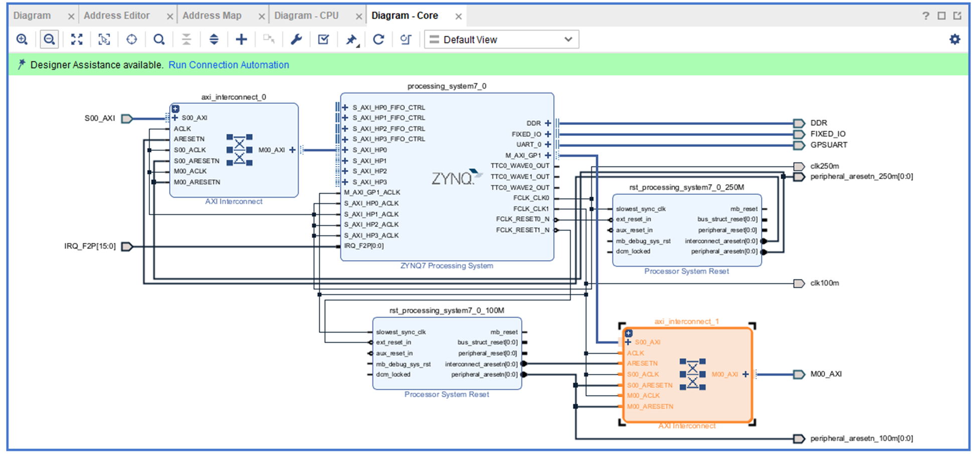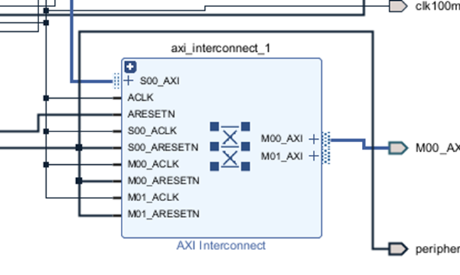 この場合、AXI_M01ポートは100MHzで動作するようになりますが、異なるクロックで接続しても、Interconnect内でうまく速度の変換が行われます。