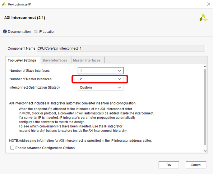 axi_interconnect_1をダブルクリックしてプロパティを開きます。