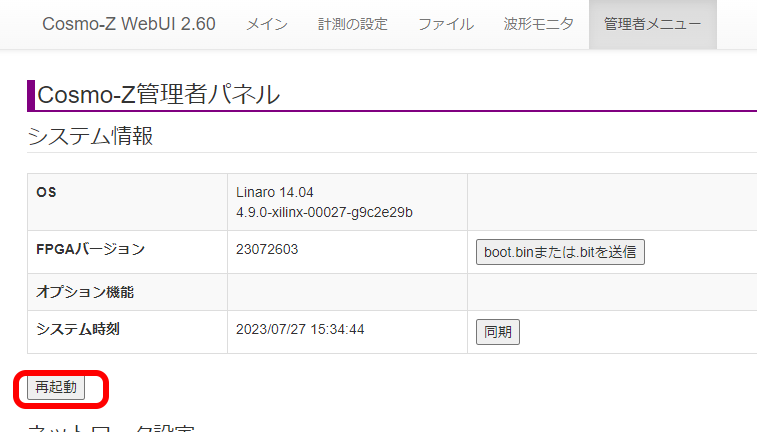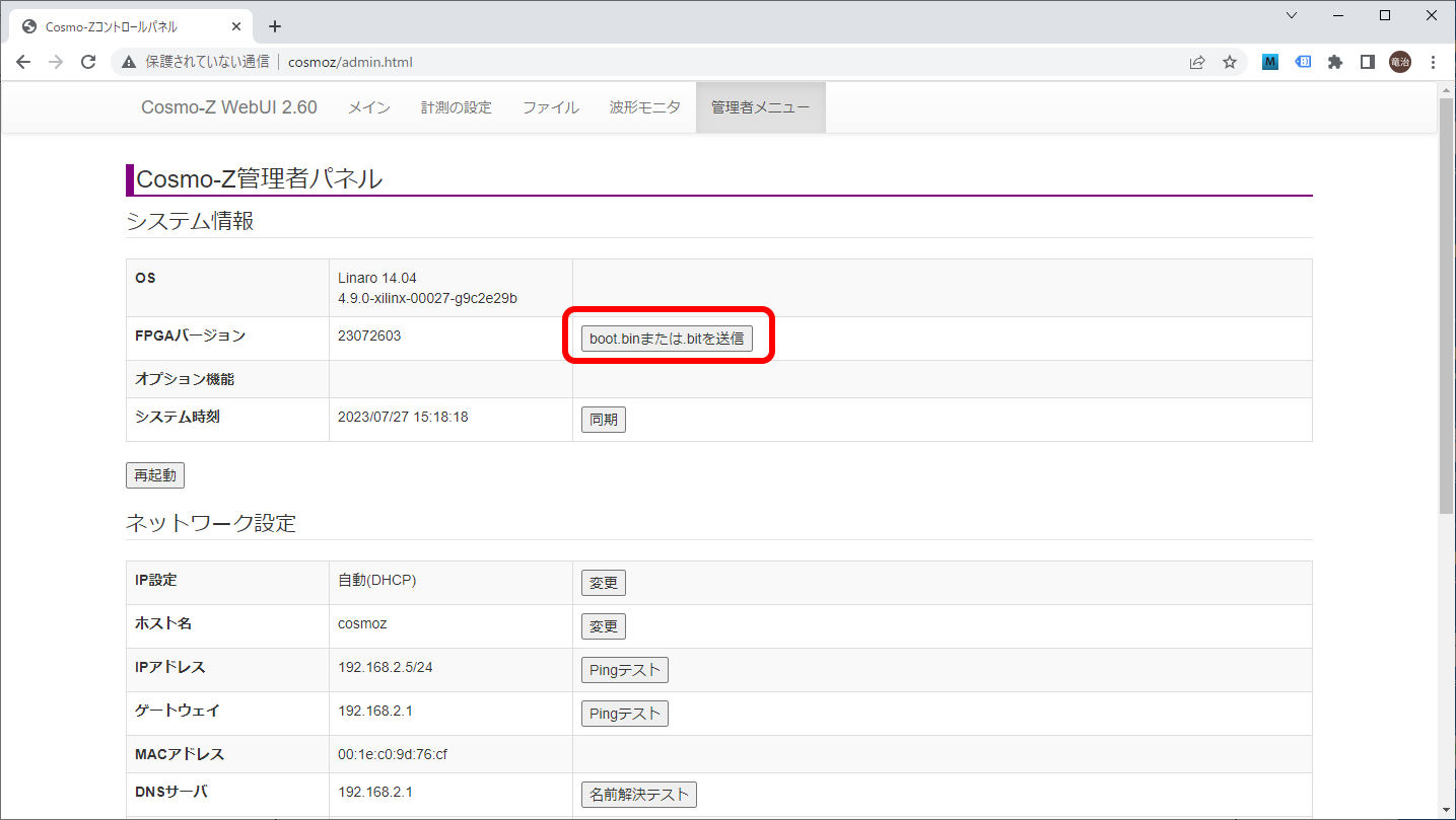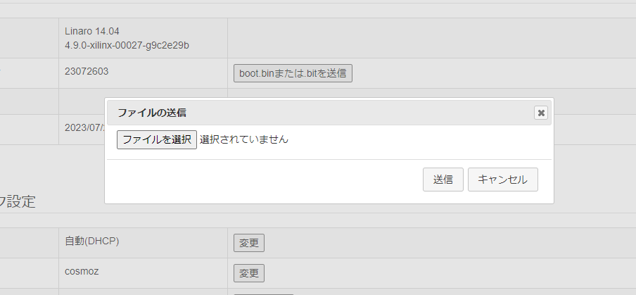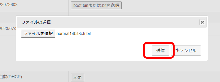 管理者パネルが開くので、「boot.binまたは.bitを送信」と書かれたボタンを押します。