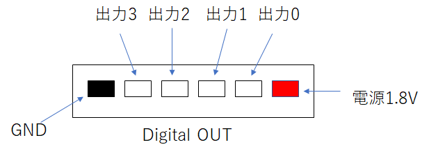 Cosmo-Z MiniのGPIOは入力4bit、出力4bitが用意されていて、ピン配置は下記のとおりです。