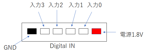 - 電源1.8Vは「装置内部の1.8V電源」に接続されています。絶対に3.3Vなどの高い電圧を外部から加えないようにしてください。
