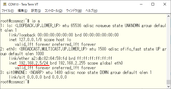 そのような場合は、Cosmo-Zにログインして ip a コマンドで現在のIPアドレスを調べて、hostnameのところに直接IPアドレスを指定してください。