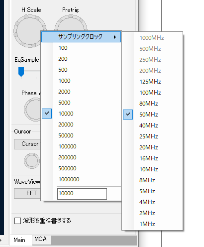 そのような場合は、H Scaleのツマミの上で右クリックして、サンプリング長と周波数を個別に設定できます。