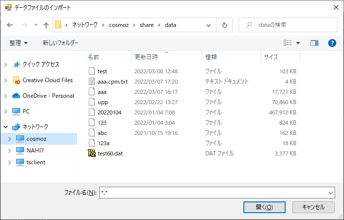 capture コマンドで取得された波形は \cosmoz\share\data フォルダにあるので、何らかの方法で Windowsのフォルダにコピーするか、直接\cosmoz\share\dataフォルダを開きます。