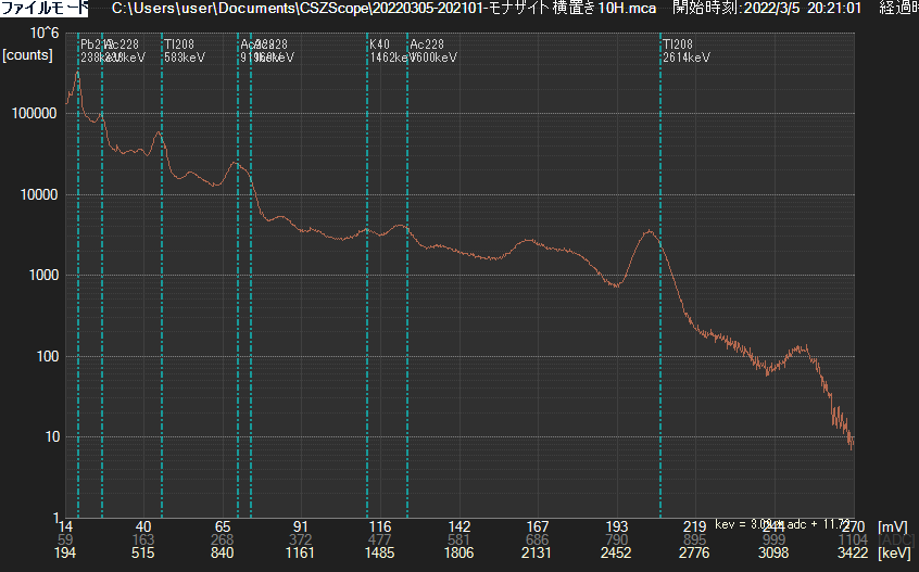 また、イベントキャプチャで計測されたファイルをインポートしてMCAで見られるスペクトルに変換する機能も制限はありません。