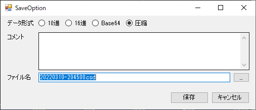 - 10進・・XMLファイルに生の10進データで書き込みます。内容を目視で確認したい場合に使います。