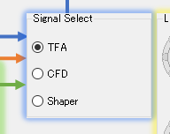 信号セレクタは、TFA+BLRからの信号を出力するか、CFDからの信号を出力するか、Shaperからの信号を出力するかを選択します。