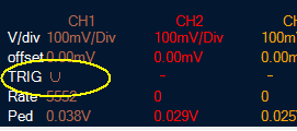 TRIGの右に書かれた図形はトリガの種類を表し、その右の数字は電圧レベルを表します。