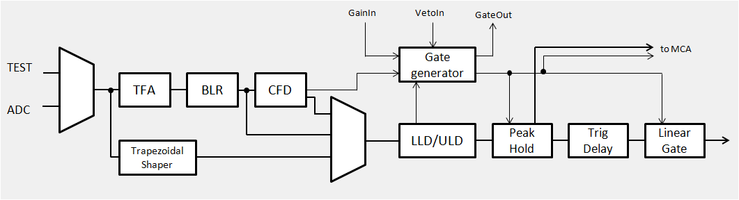- Trapezoidal Shaper・・・弾道欠損の波形整形。半導体検出器の場合に使う