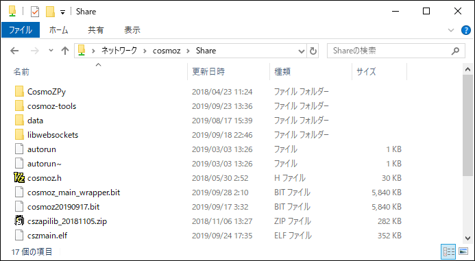 Cosmo-Zではsambaというプログラムが動作していて、Windows PCと簡単にファイル共有ができます。