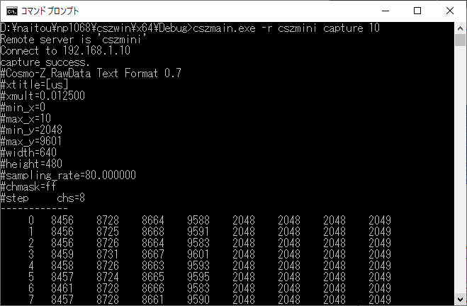 基本的には/cosmoz.elfと同じ操作体系となりますが、WindowsマシンにはZYNQは直接は接続されていないので、常に-r ホスト名のオプションが必要となります。